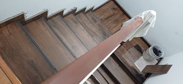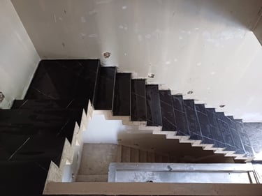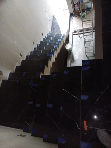 Existen muchas instalaciones que lucen bien, pero pocas como esta de porcelanato negro de 1.20 m, que aporta sencillez y elegancia a las escaleras y a cualquier espacio donde se coloque.
