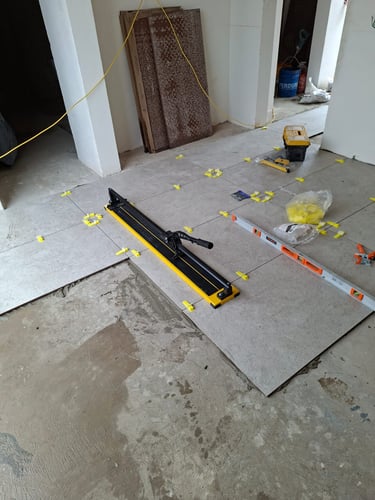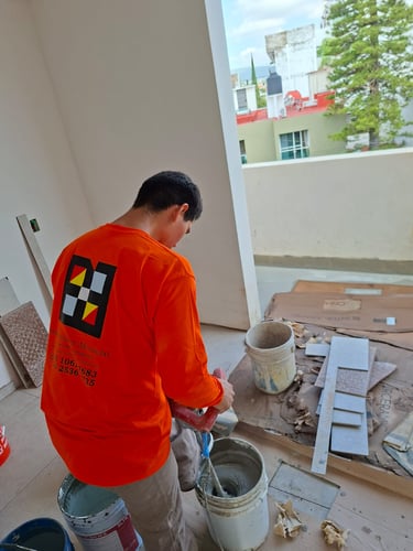 En esta instalación se utilizó porcelanato de 60x60 cm, que aporta una imagen espectacular a la oficina, realzando el espacio con sus tonos claros y elegantes.