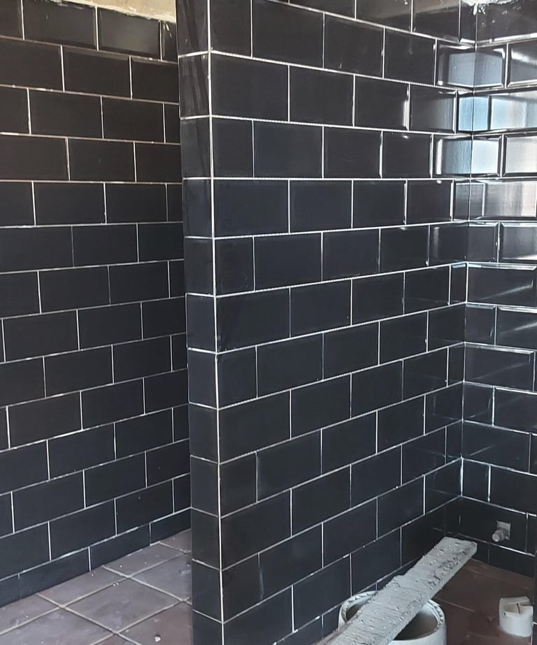 Nuestro objetivo siempre es ofrecer la mejor calidad en acabados, pero hay ocasiones en las que simplemente superamos las expectativas, como en esta instalación de azulejo oscuro de 15x30 cm.